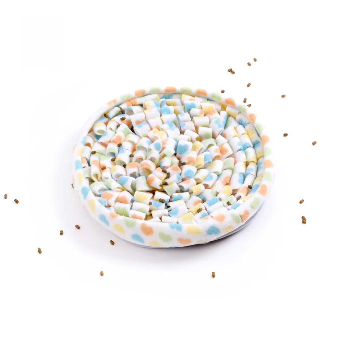 Snuffle mat for cats and small dogs — 11" (28 cm) fleece for foraging. Gentle, machine washable.